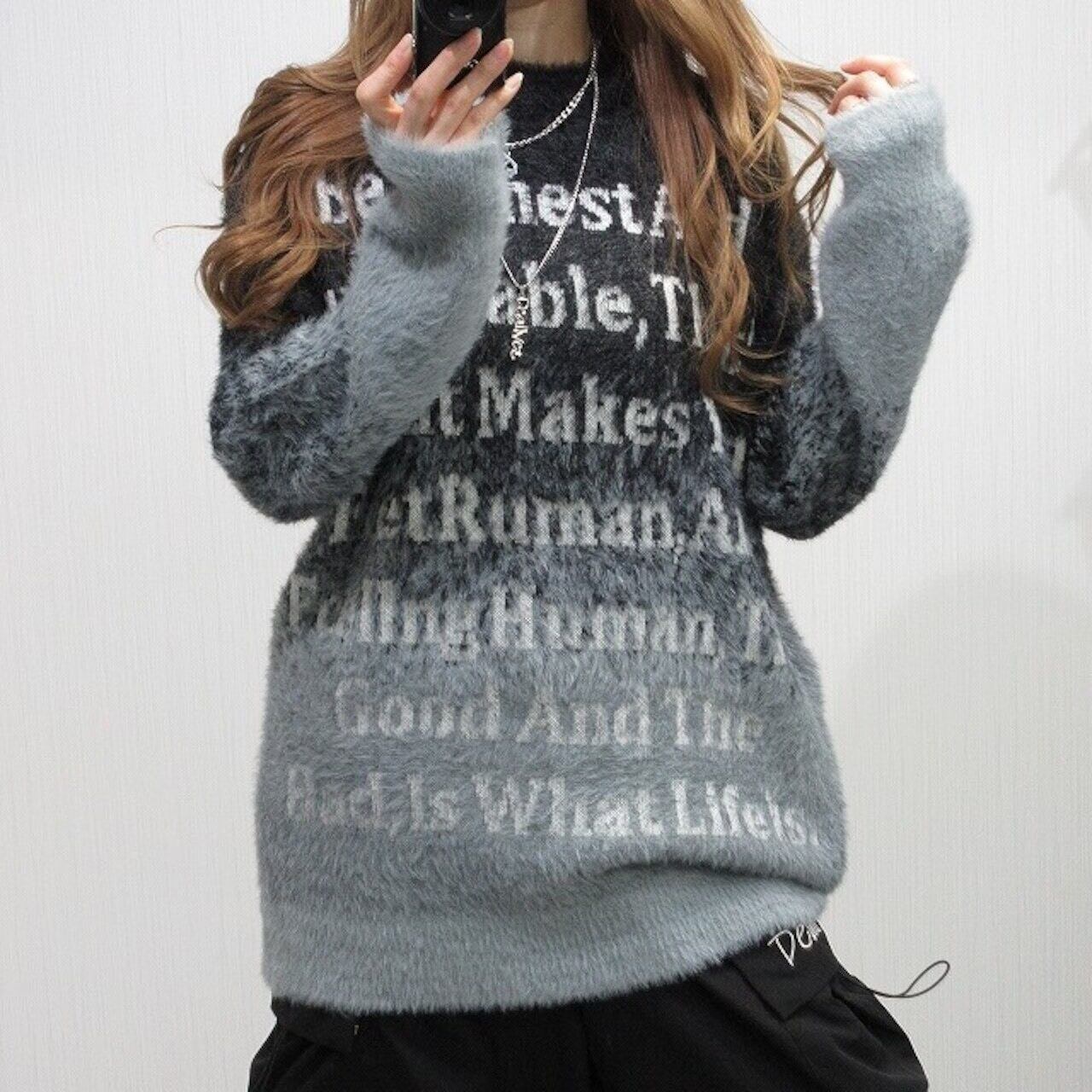 グラデーションロゴにふんわりシャギーが目を惹くオーバーニット♪