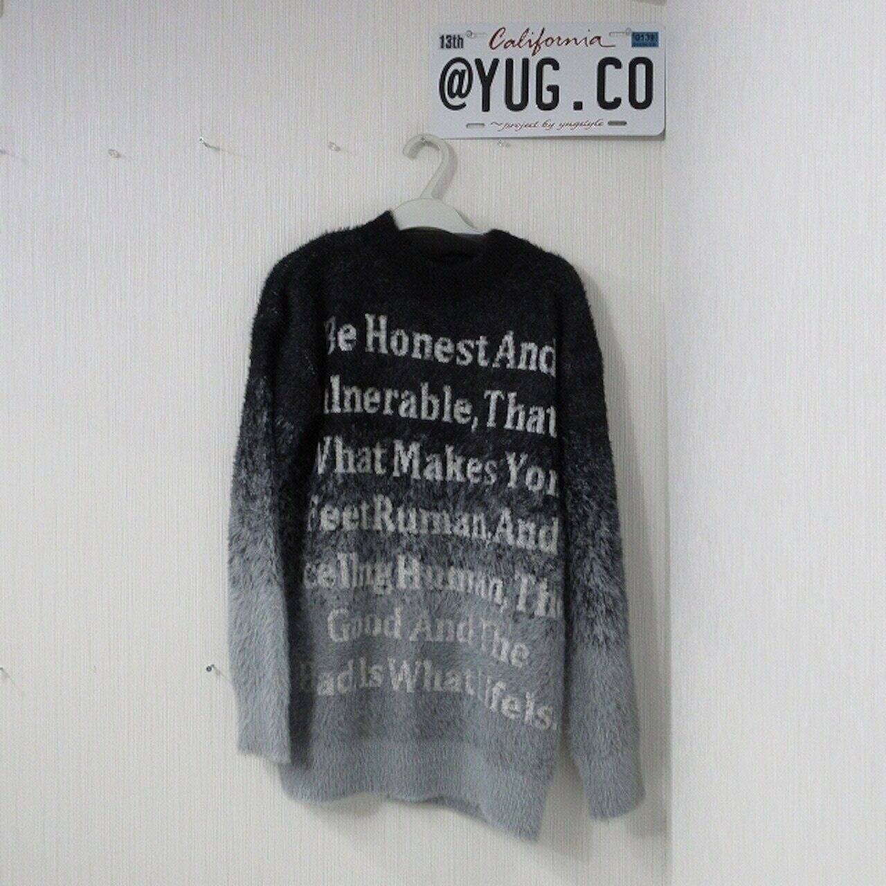グラデーション 英字ロゴ 柔らかシャギーニット
