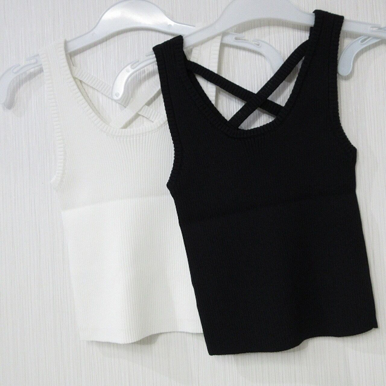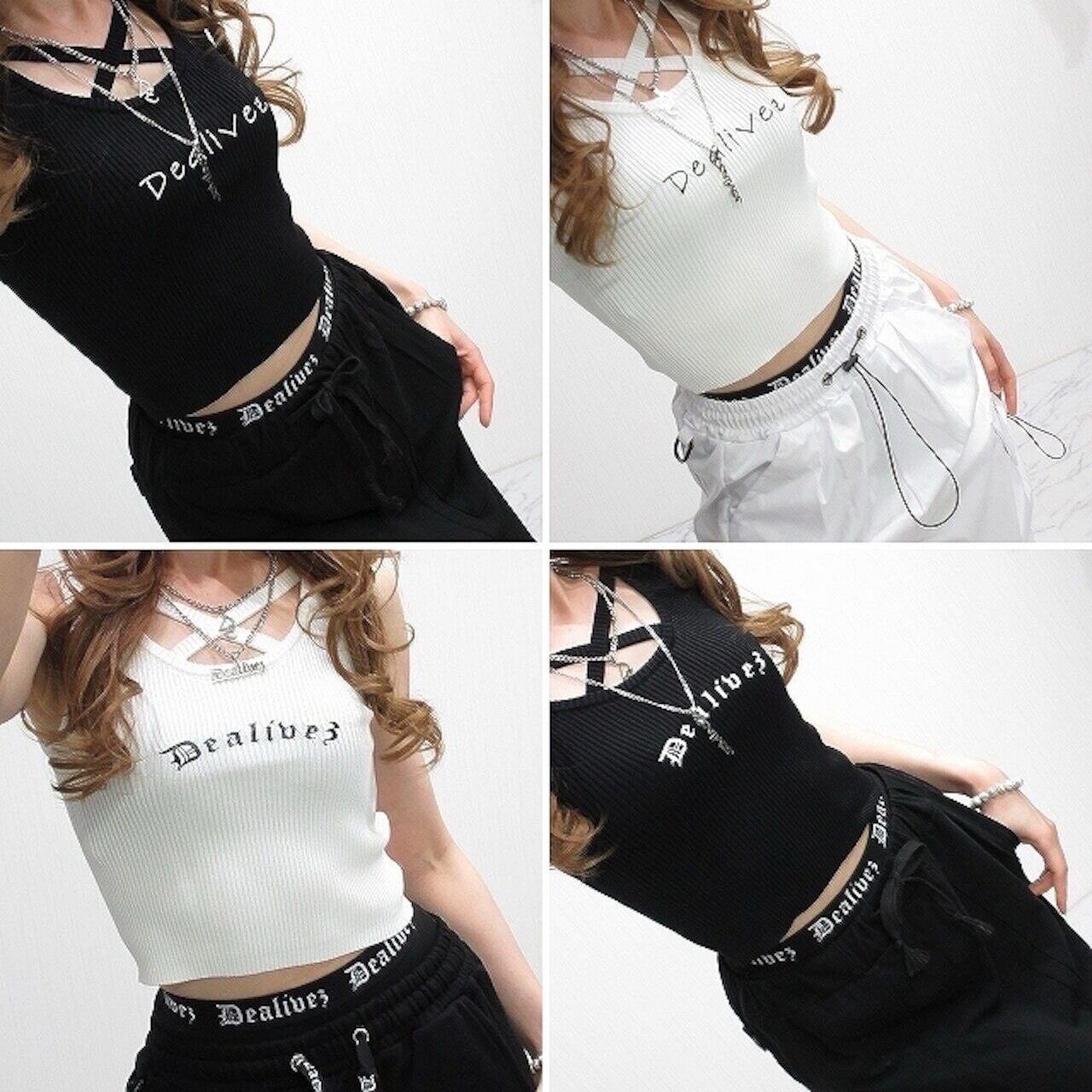 【Dealivez】Frontクロス 胸元あき ロゴ リブ タンクトップ 前後リバーシブル 2WAY