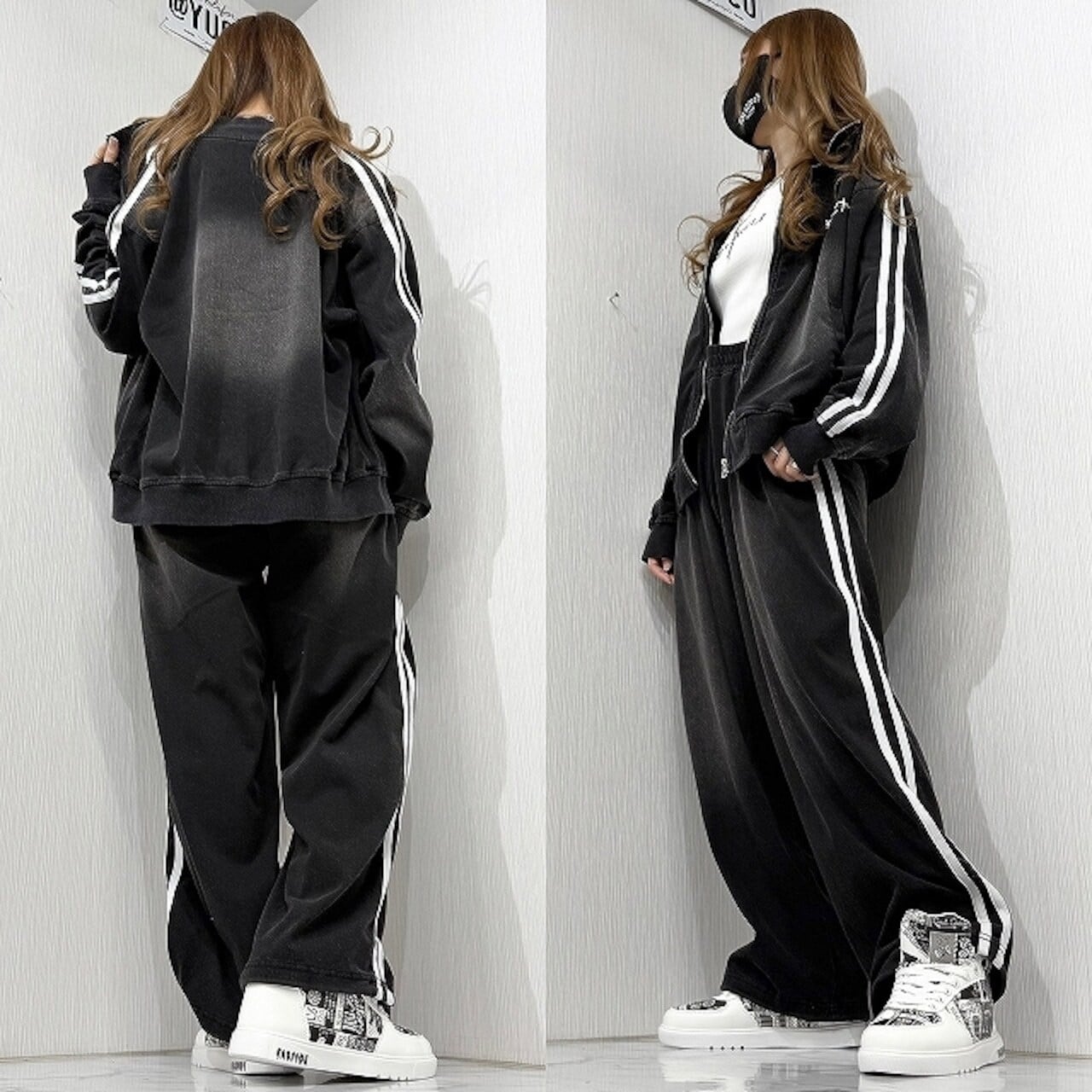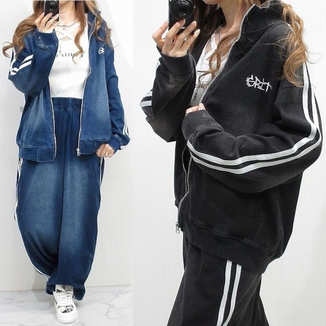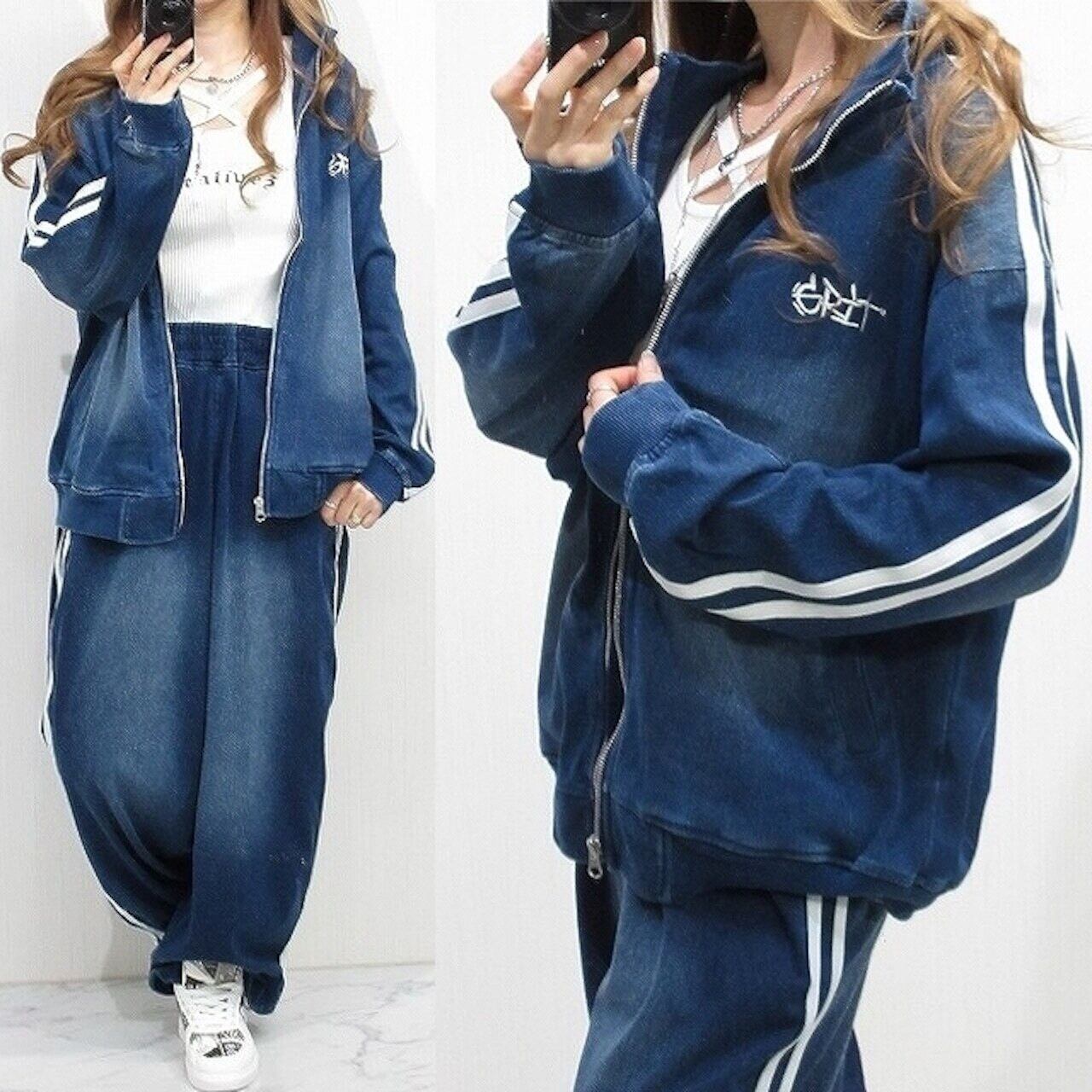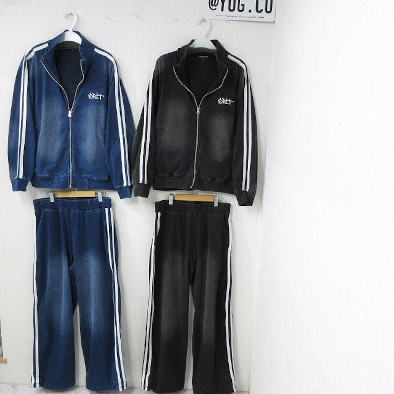 【SET UP】上下セット ロゴ刺繍 デニムジャケット&デニムパンツ Sideライン